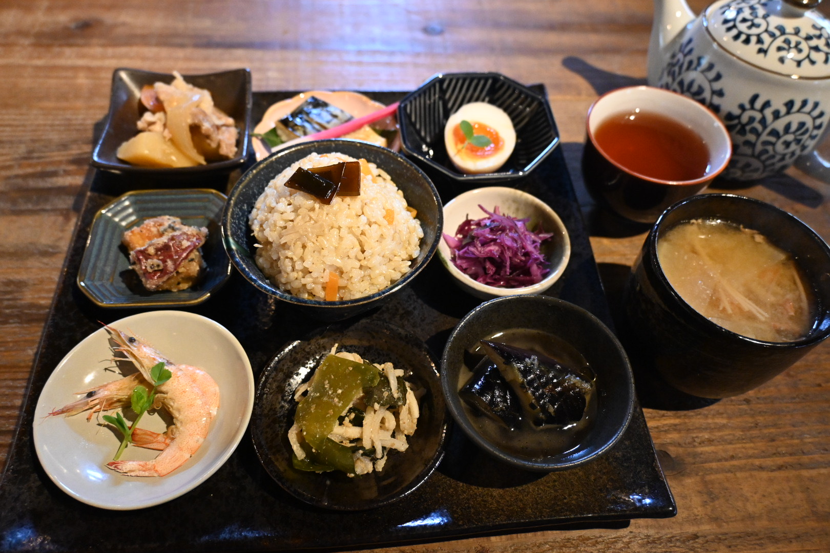 The tea I had was Hojicha (roasted green tea). The kind of tea depends on the day, but the owner primarily uses tea leaves produced in the Kumamoto prefecture.